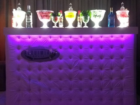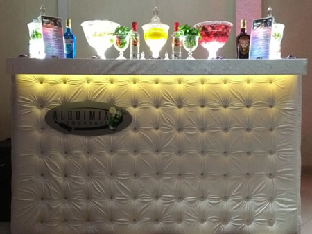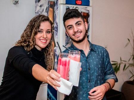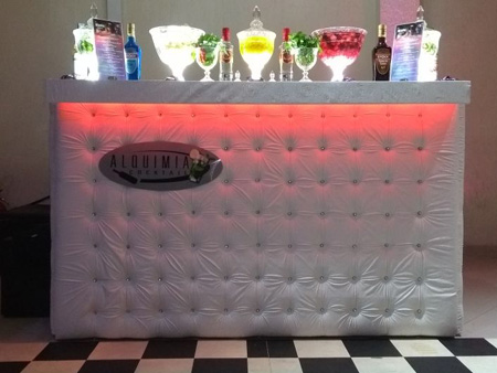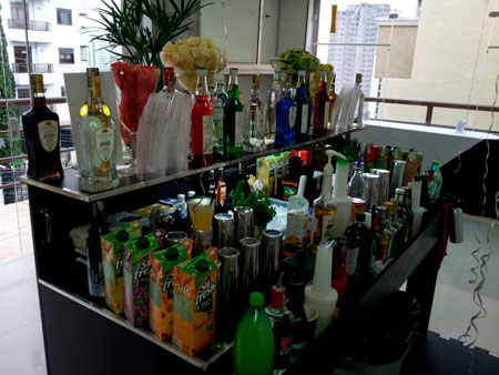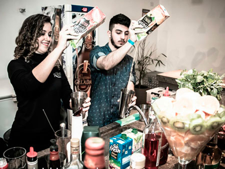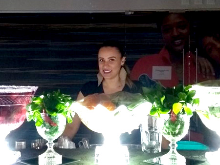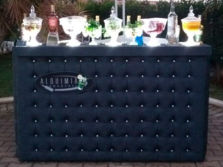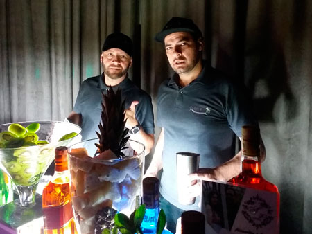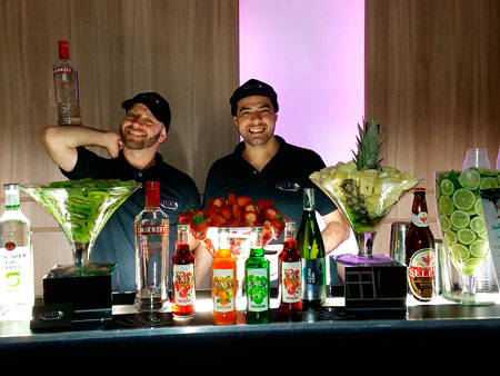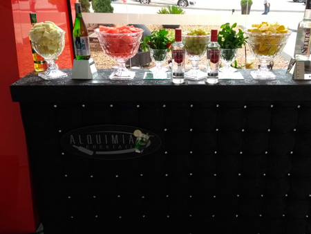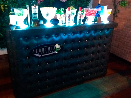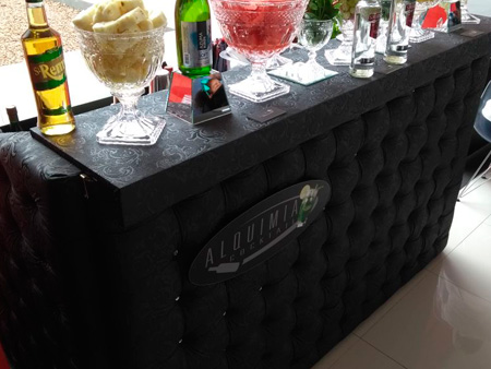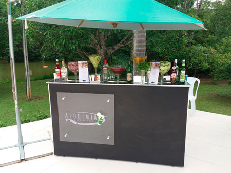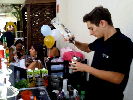 Equipe especializada, bem apresentada, carismática e qualificada para atender os convidados na elaboração dos cocktails e caipirinhas.