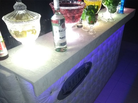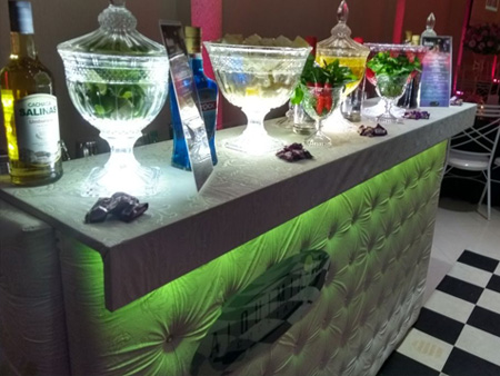 Estruturas modernas e iluminadas, produzidas para melhor execução do serviço e melhor visibilidade dos convidados.